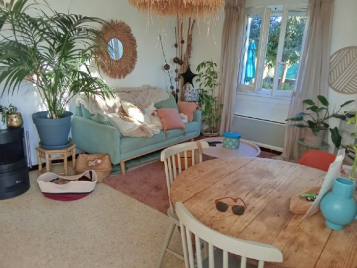 Dans quartier résidentiel, maison de type 2 d'une superficie de 52 m² environ sur 400 m² de jardin composée d'un séjour, une cuisine américaine équipée et aménagée, 1 chambre, 1 bureau, une salle...